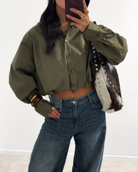 POPLIN CROPPED BLOUSE SHIRT - ARMY GREEN