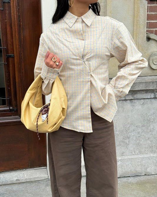 FITTED CHECKED SHIRT WITH ASYMMETRICAL CLOSURE - SOFT YELLOW