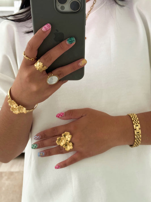 CHUNKY FLOWER RING - GOLD