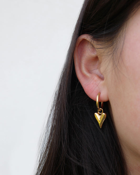 HEART CHARM EARRINGS - GOLD