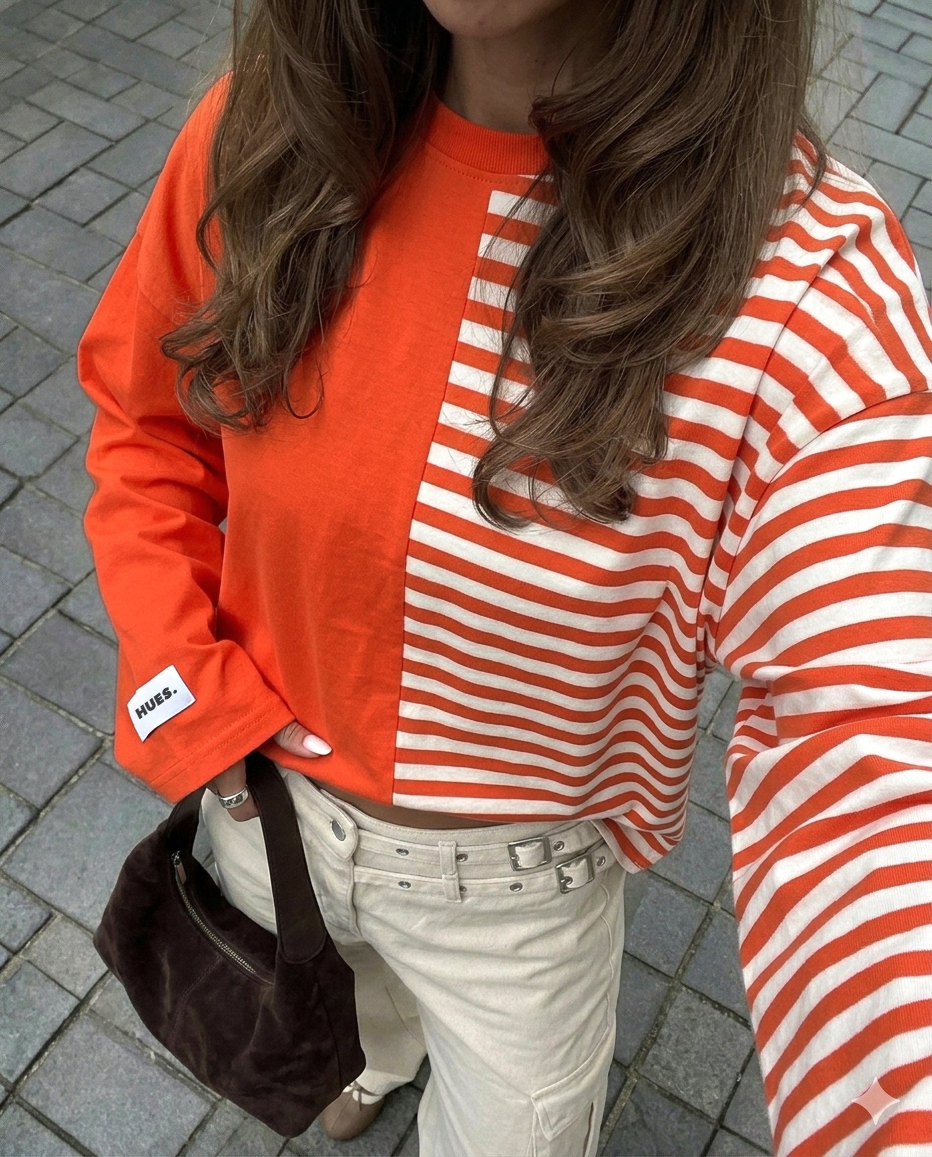 Longsleeve in soft 100% cotton with a relaxed fit. Features dual orange stripes and a clean silhouette. Designed for everyday wear with a laid-back edge.