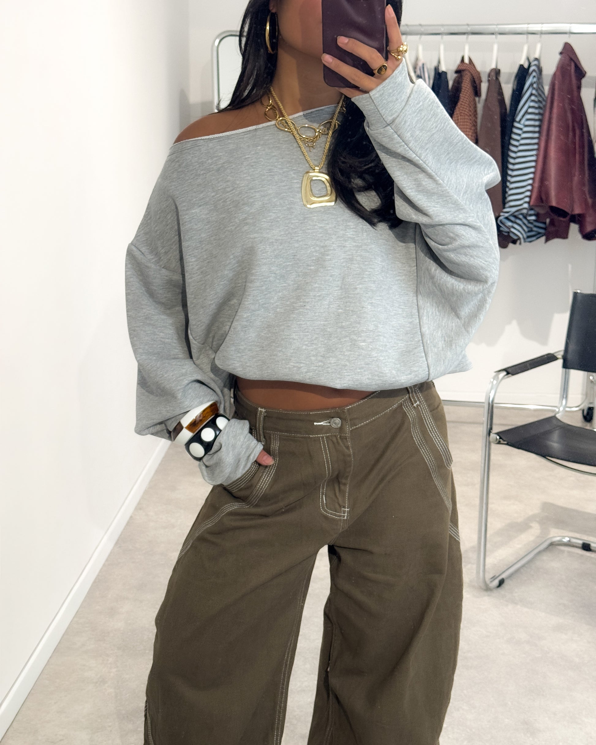ONE SHOULDER ASYMMETRICAL SWEATER - GREY