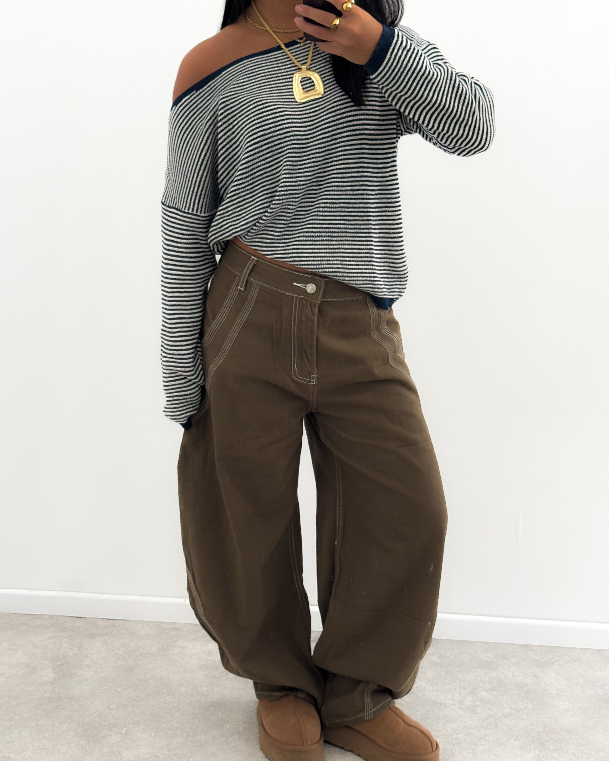 STRIPED ONE SHOULDER ASYMMETRICAL TOP - NAVY
